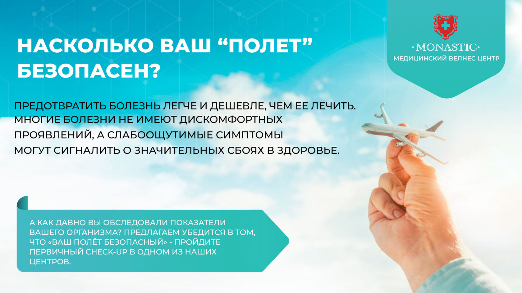 ПЕРВИЧНЫЙ CHECK UP Здоровья Первичное обследование диагностика состояния сердца и легких + консультация врача Что входит: ✓ ЭКГ сердца ✓ Спирометрия-диагностика состояния легких ✓ Определение уровня оксигинации крови ✓ Аускультация-прослушивание легких, сердца ✓ Осмотр верхних дыхательных путей ✓ Расшифровка всех показаний врачем